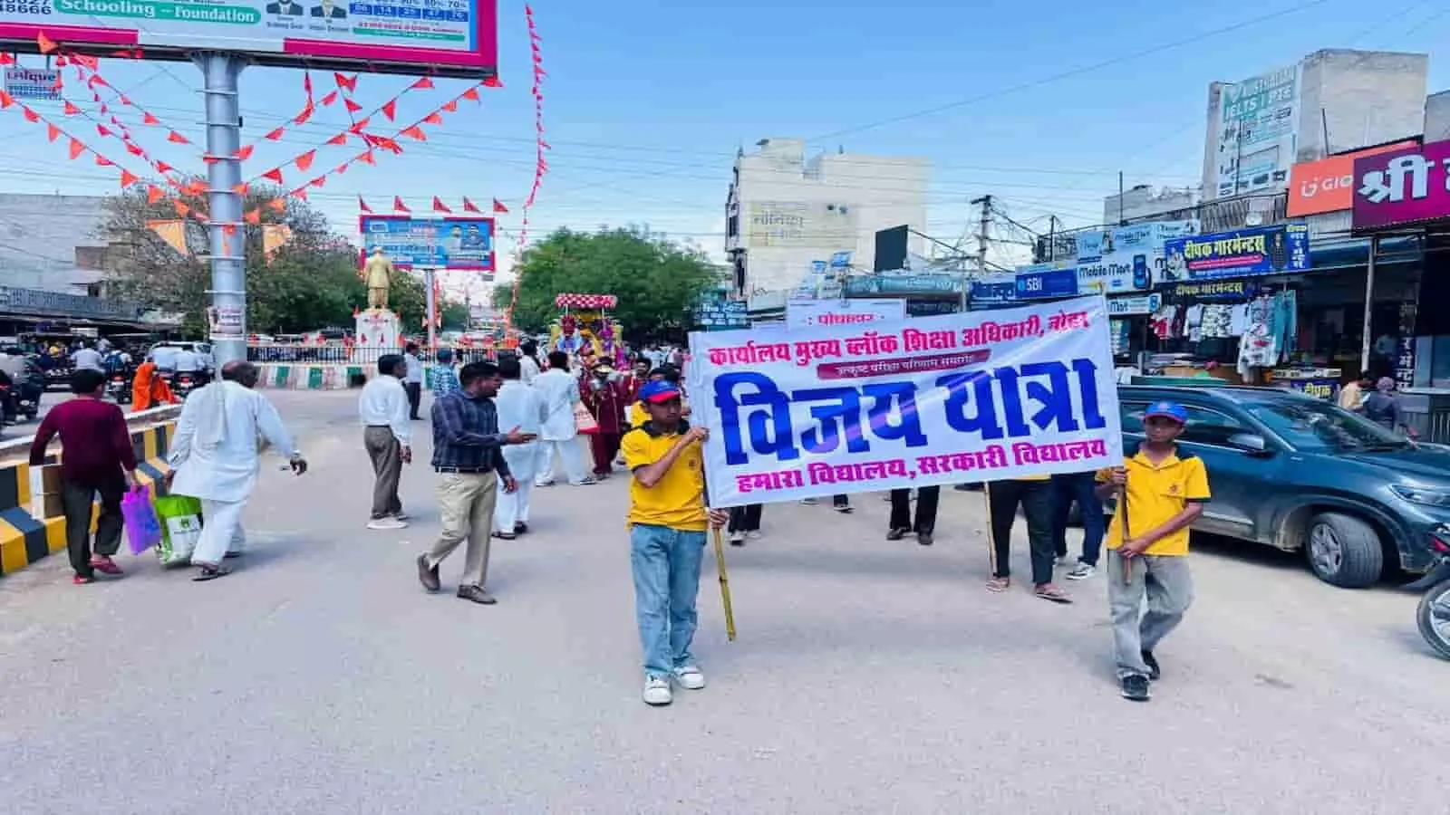 नोहर: 12वीं के मेधावी विद्यार्थियों का सम्मान, सीबीईओ के नेतृत्व में निकली विजय यात्रा