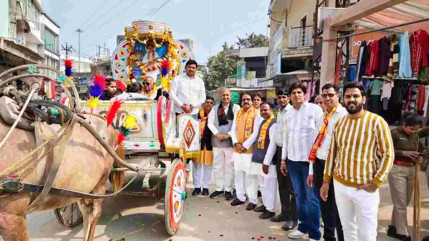 निंबाहेड़ा में बसंत पंचमी पर श्री नामदेव टांक क्षत्रिय दर्जी समाज द्वारा भगवान श्री नामदेव जी महाराज के बोधिसत्व दिवस पर भव्य शोभायात्रा निकाली गई। भाजपा पदाधिकारियों ने पुष्प वर्षा कर यात्रा का स्वागत किया। आजाद चौक से ढाबेश्वर महादेव मंदिर तक भक्तिमय माहौल में संपन्न हुए इस आयोजन में पूर्व विधायक अशोक नवलखा सहित कई गणमान्य नागरिक मौजूद रहे।