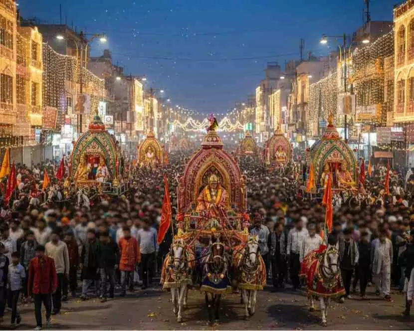 बेगूं में भगवान देवनारायण जयंती पर आयोजित भव्य शोभायात्रा में उमड़ा जनसैलाब। गुर्जर संघर्ष समिति के अध्यक्ष विजय बैसला ने टीएसपी क्षेत्र में एमबीसी, ओबीसी और ईडब्ल्यूएस आरक्षण की मांग उठाकर सरकार को घेरा। आकर्षक झांकियों, अखाड़ा प्रदर्शन और पुष्प वर्षा के साथ निकले इस जुलूस ने क्षेत्र में सामाजिक और धार्मिक चेतना का नया अध्याय लिखा है। पूरी रिपोर्ट पढ़ें।