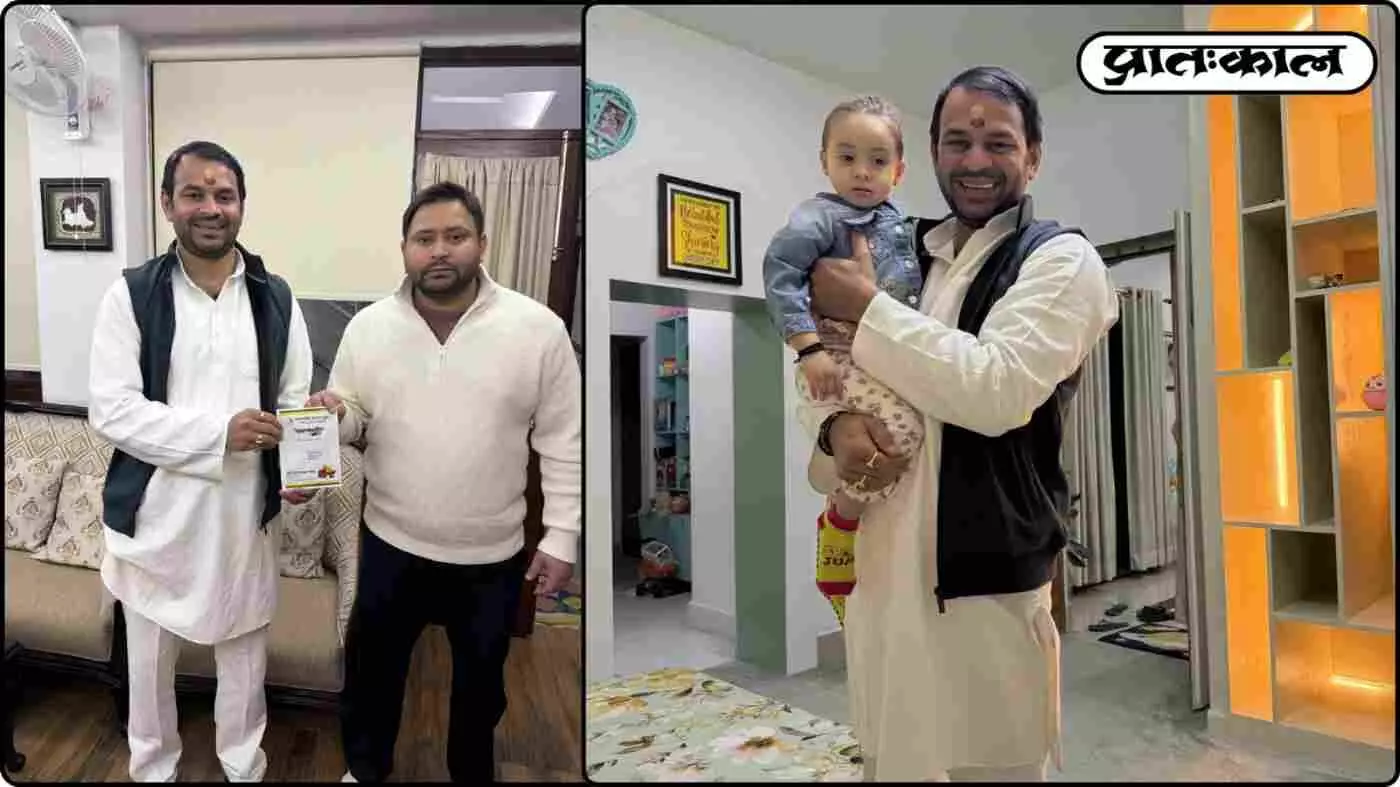 मकर संक्रांति पर लालू परिवार में सुलह! तेजप्रताप यादव ने राबड़ी आवास पहुंचकर भाई तेजस्वी और माता-पिता से मुलाकात की। भतीजी कात्यायनी को गोद में खिलाया और 14 जनवरी के ऐतिहासिक 'दही-चूड़ा भोज' का न्योता दिया। आरजेडी से निष्कासन के बाद दोनों भाइयों की इस पहली मुलाकात ने बिहार की राजनीति में नई हलचल पैदा कर दी है।