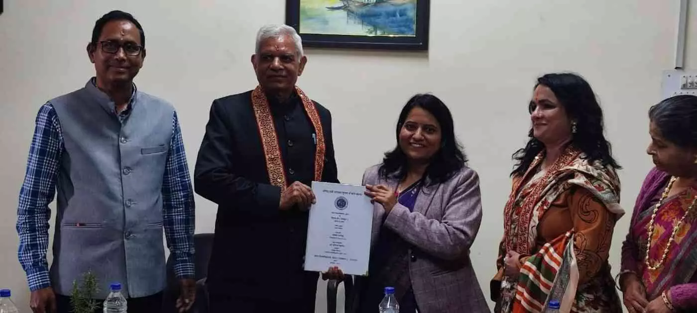 जयपुर में विधानसभा अध्यक्ष वासुदेव देवनानी ने राज्यपाल हरिभाऊ बागडे से मुलाकात कर उन्हें राष्ट्रगीत 'वन्दे मातरम्' के 150 वर्ष पूर्ण होने पर आधारित विशेष कैलेंडर 2026 और अपनी पुस्तक 'सनातन संस्कृति की अटल दृष्टि' भेंट की। राष्ट्रभक्ति और सांस्कृतिक विरासत को समर्पित इस भेंट में राष्ट्रगीत के इतिहास और बंकिम चंद्र चट्टोपाध्याय के योगदान पर चर्चा हुई।